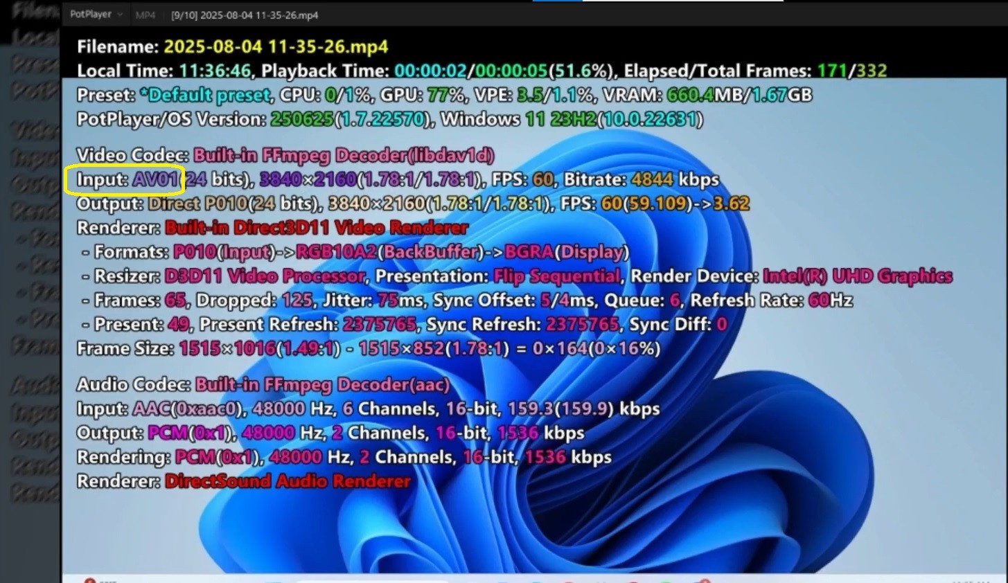 8. You can check if the video is using AV1 by playing it in PotPlayer and checking input message info.