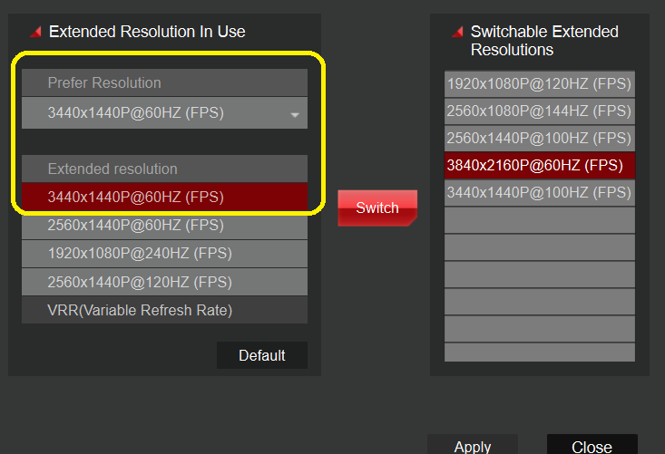 Please move 3440×1440 from the right side to the left side in the Preferred Resolution list (before rearranging):