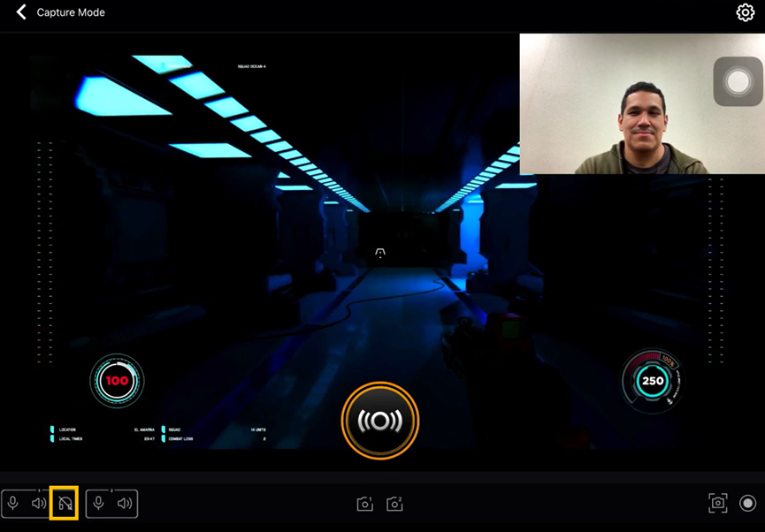 - Enable sound monitoring via the headset icon.