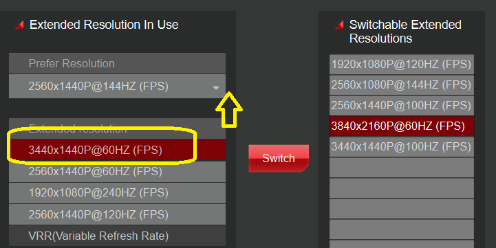 Please move 3440×1440 from the right side to the left side in the Preferred Resolution list (before rearranging):