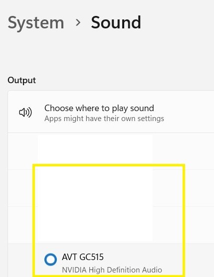 3. Check that the audio input device (GC515) is enabled for output in both Streaming Center