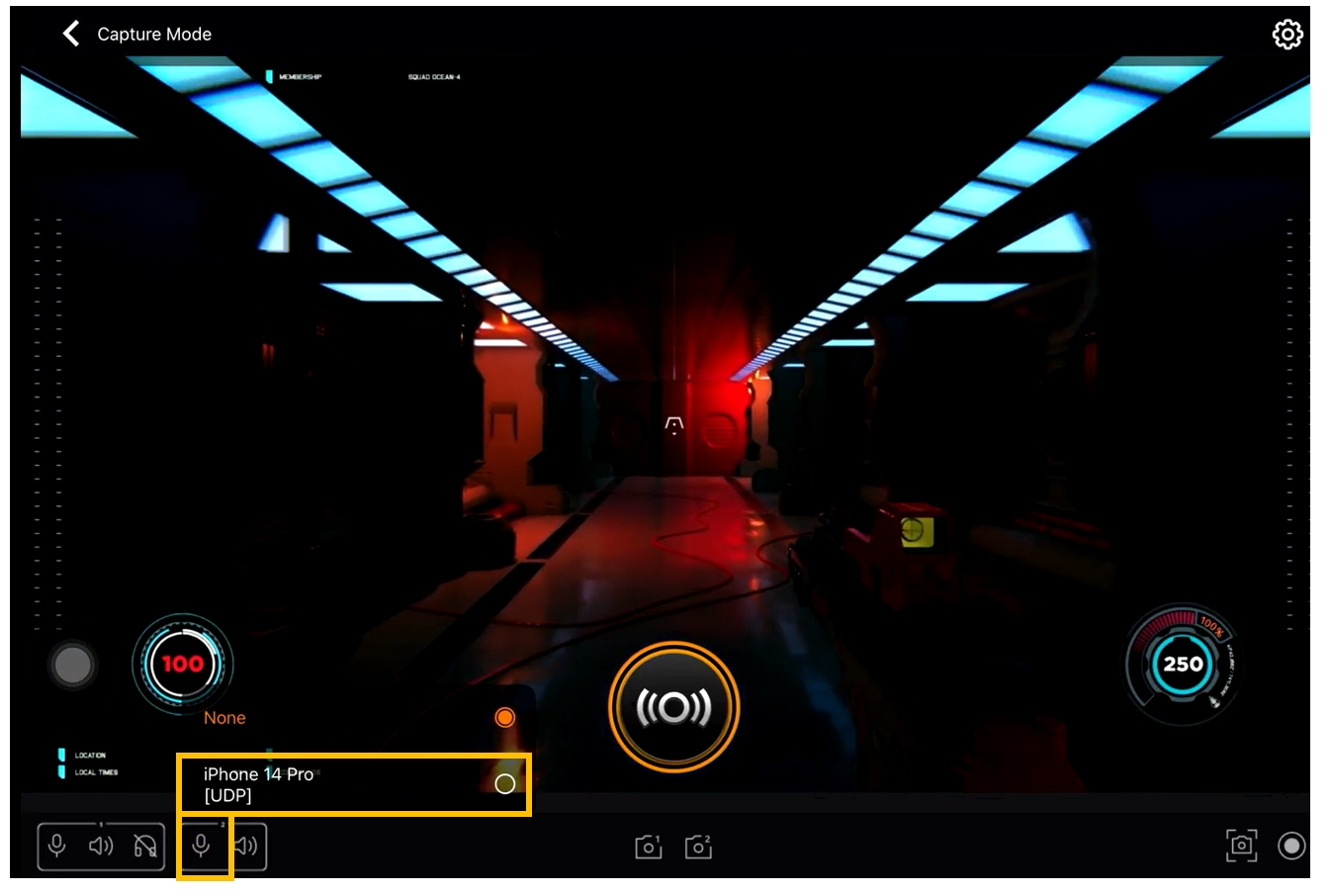 - Enable sound monitoring via the headset icon.