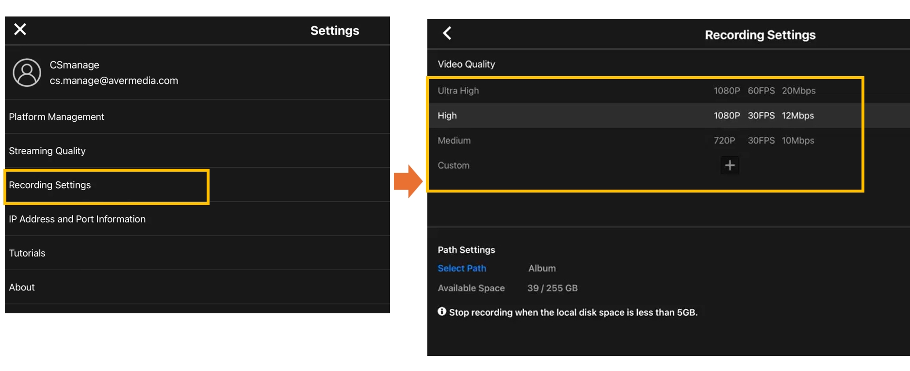 - Change resolution in Recording Settings.
