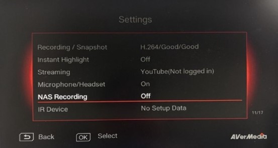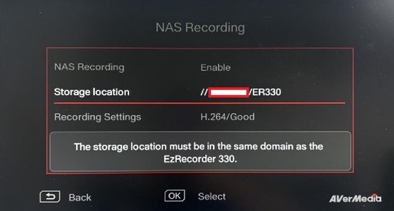 After completing the steps above, close the menu. Press the Record key on the remote control, and the ER330 will start recording to the NAS.