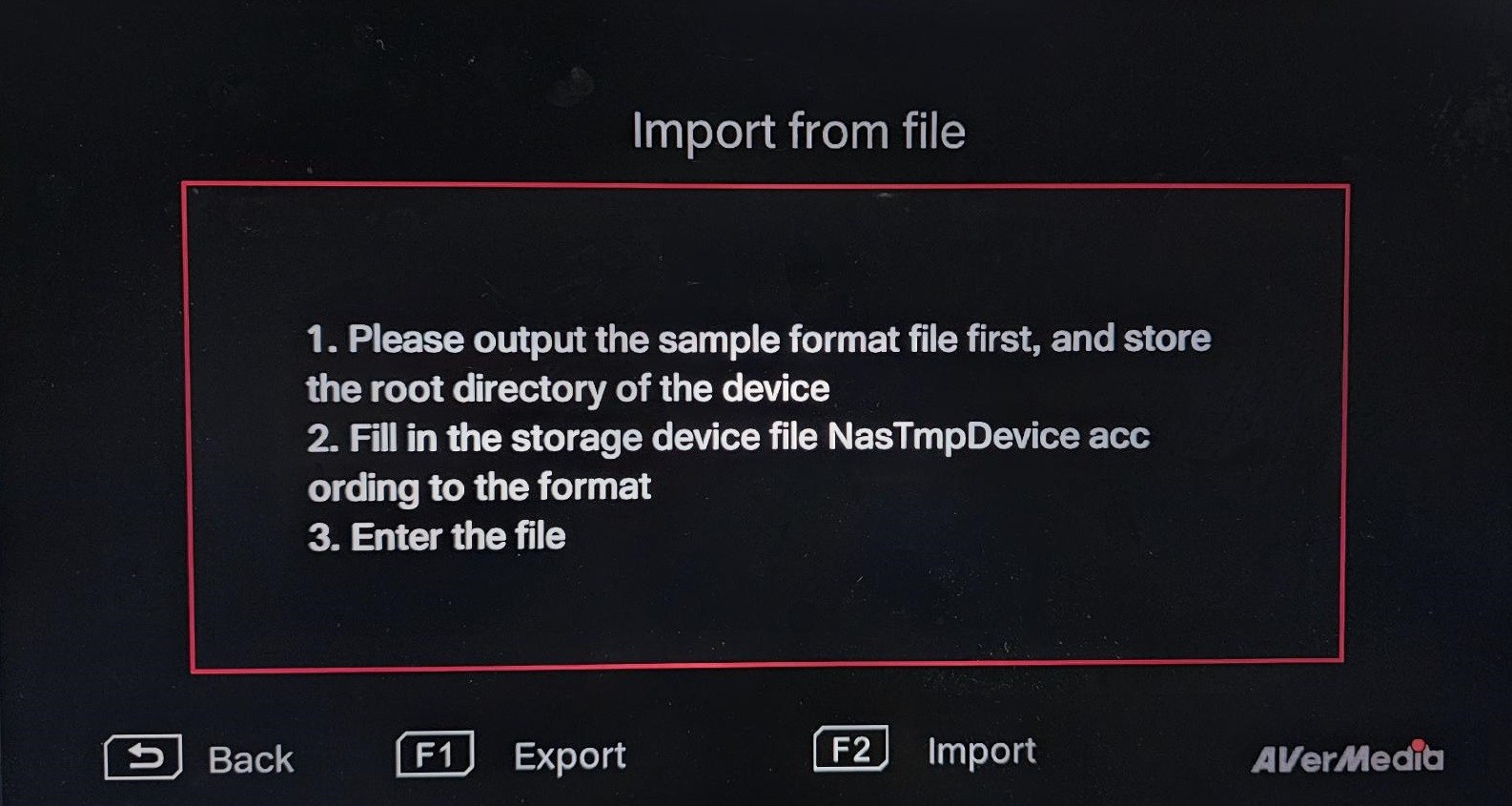 • In the "Import from File" interface, press F2 again to import the text file from your external hard drive into the ER330.