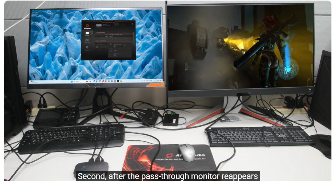 Source → AVerMedia capture device → Pass-through monitor