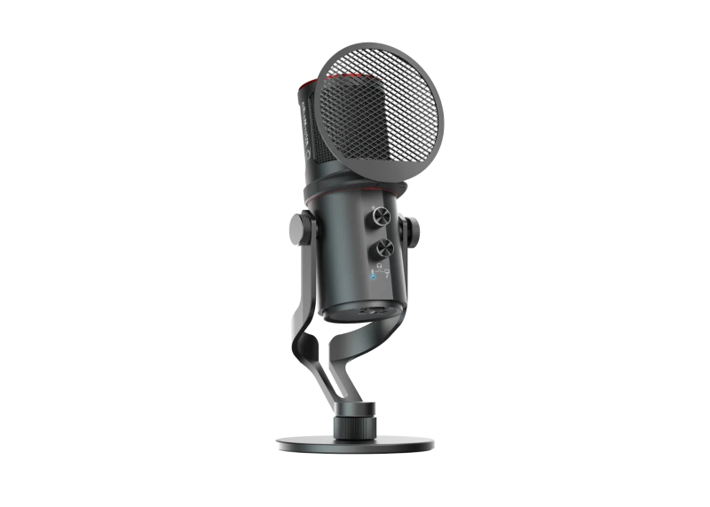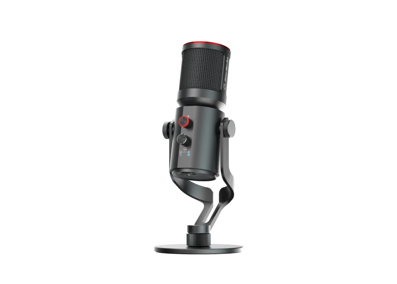 The AM350 features a dual microphone pickup pattern design, offering both cardioid and omnidirectional modes for versatile recording. Its intuitive studio controls allow for zero-latency monitoring through the built-in headphone output and effortless toggling between microphone and system sounds, allowing for complete audio control. Plus, the AM350 automatically saves your last audio settings, eliminating the need for readjustment in future use.
