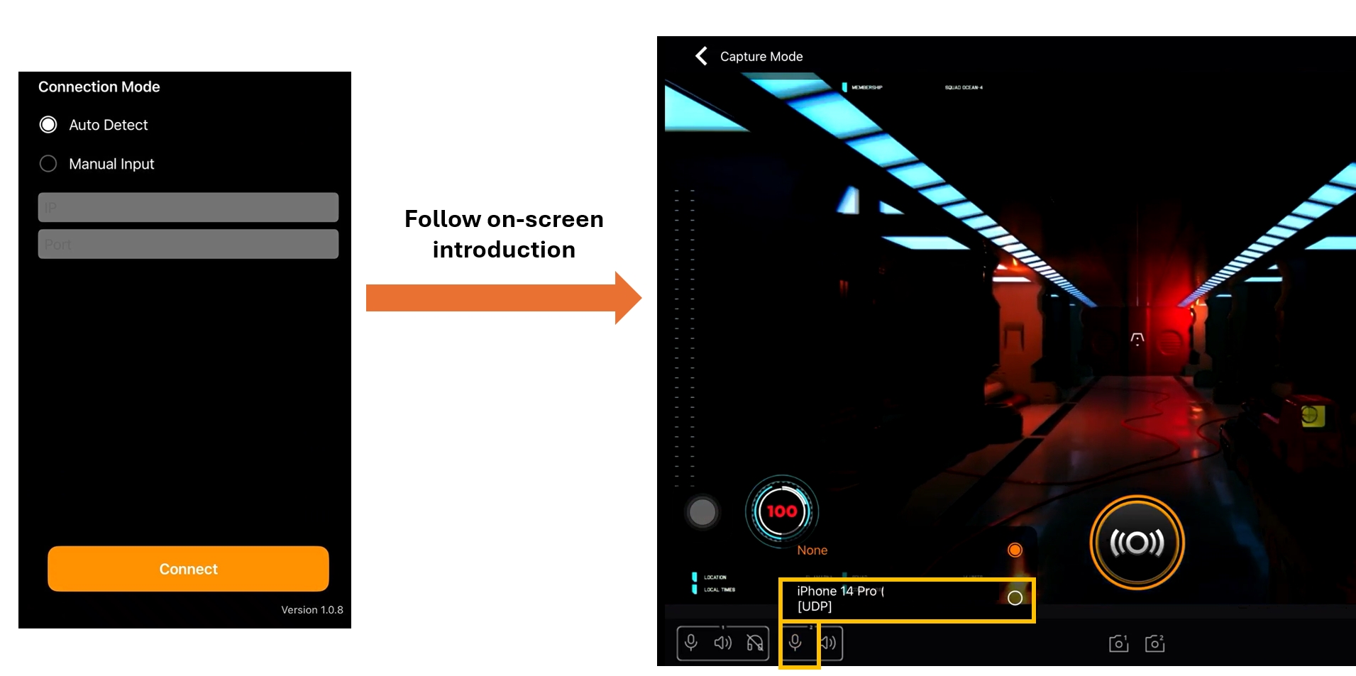 - Open the app on iPhone → click Auto Detect → select your iPad→ On Ipad, click microphone of second audio source → select your iPhone.