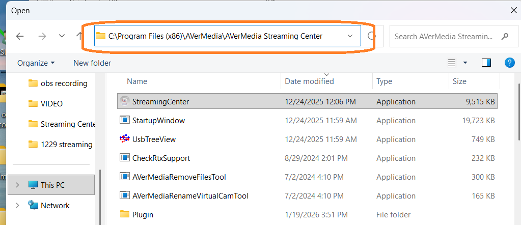 Locate the Streaming Center installation path and select the executable file.