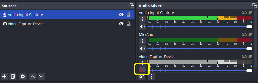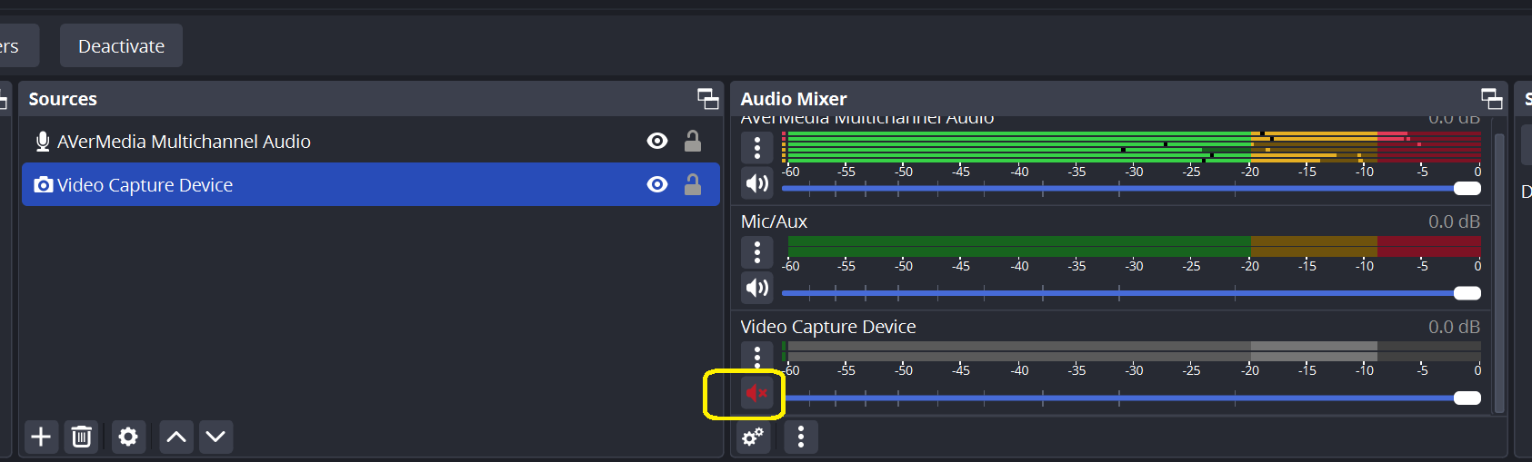 2 In OBS, using "Video Capture Device" for audio monitoring can cause AV sync issues. To fix this, switch to "Audio Input Capture" / "AVerMedia Multichannel Audio" for monitoring instead. (Make sure to disable the audio from "Video Capture Device" to avoid conflicts.)