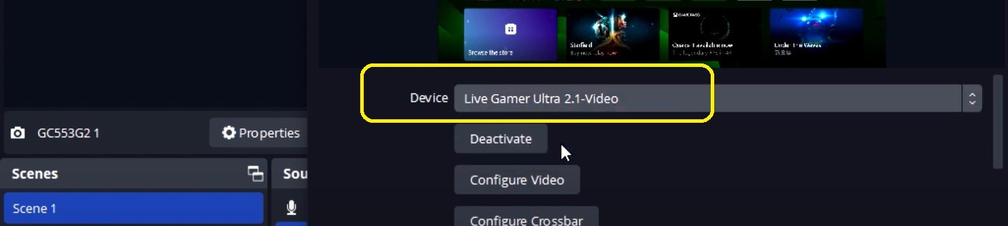 If you would like to use our capture card on multiple scenes, you should select the AVerMedia device name for Scene 1,