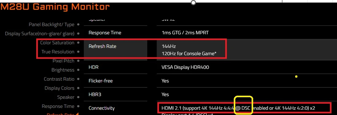 6. Please provide your screen model. (Example: Our product does not support HDMI+DSC technology. This means your screen must have DSC that supports 4K144/1440p240, like the GIGABYTE Screen M28U Gaming Monitor shown on the below.) Others are BENQ EX270QM, Corsair Xeneon 27QHD240, AG274QZM