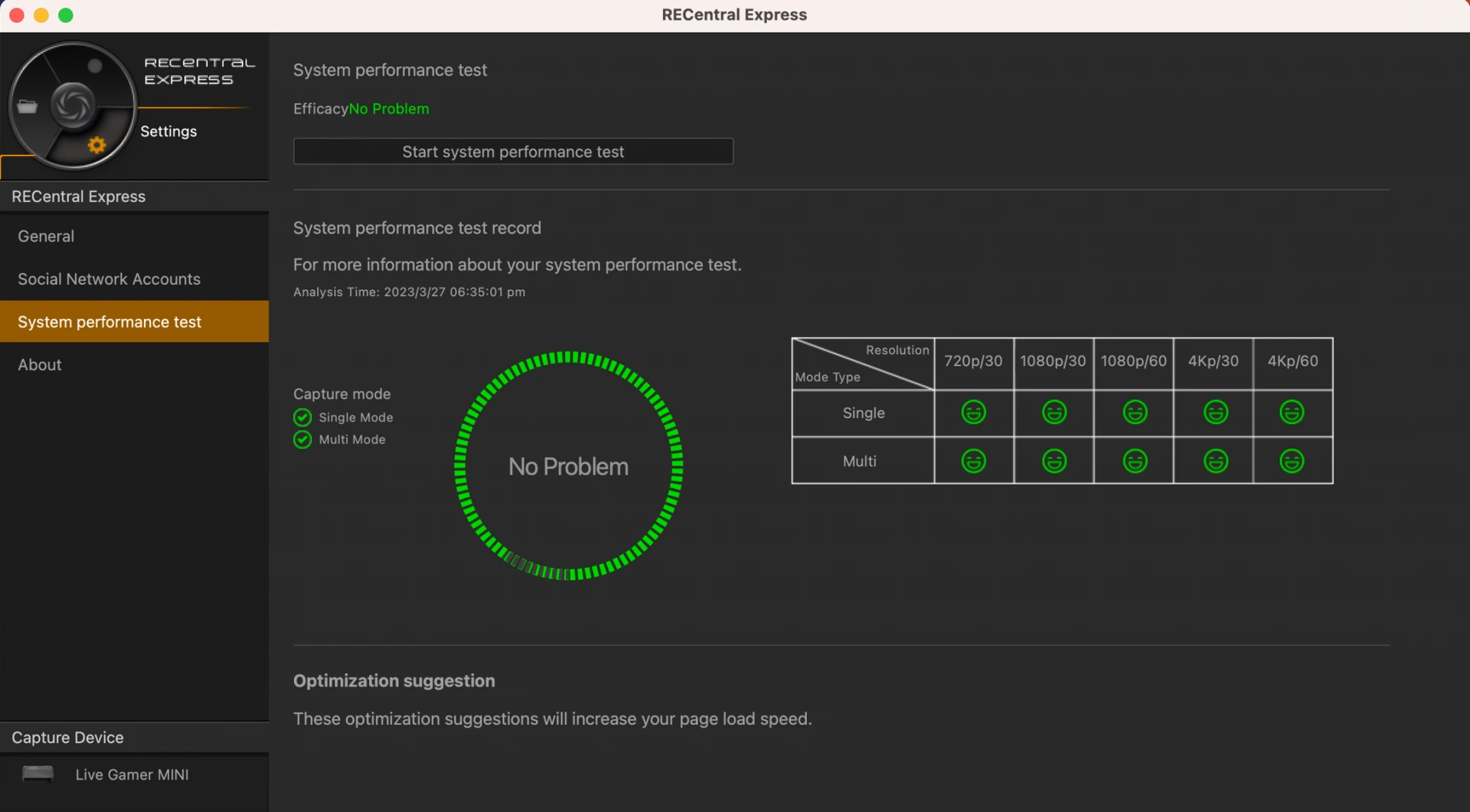 On MacOS, you may conduct a system performance test by AVerMedia RECentral Express application. In order to get as accurate result as possible, please make sure to close all applications running on your MacOS. Otherwise, it’s possible that the system performance test reslts can be different sometimes.