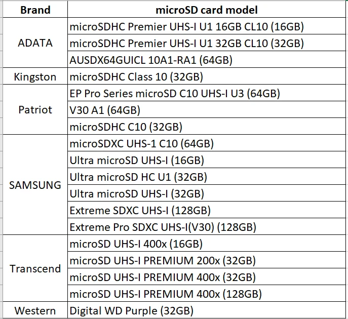 Micro SD Supported formats: FAT32 format / exFAT format (It's suggested to format in exFAT to record in a single file, without being devided into several files via FAT32.)