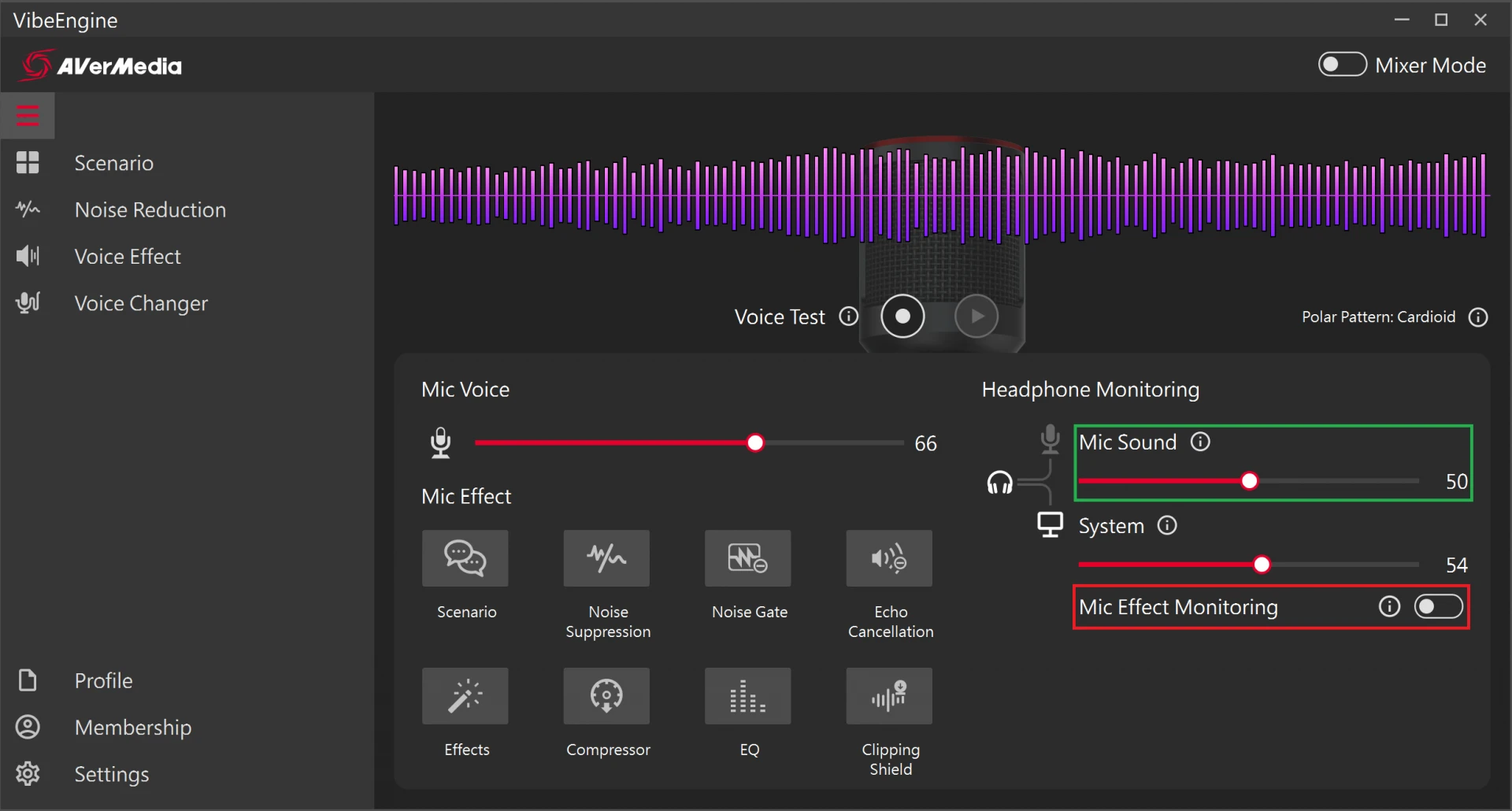 2. If Headphone Monitoring is necessary, select “Microphone Sound” as marked in the green box below.